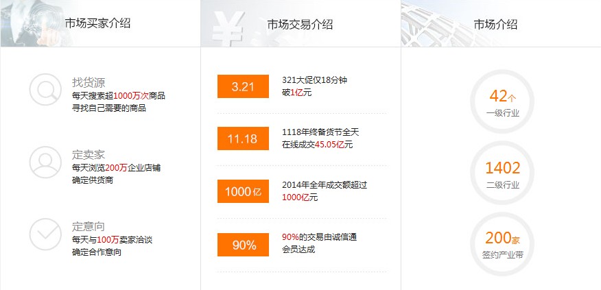 1.阿里巴巴拥有2800万注册买家,日访问量高达1亿人次,采购机会天天有