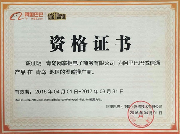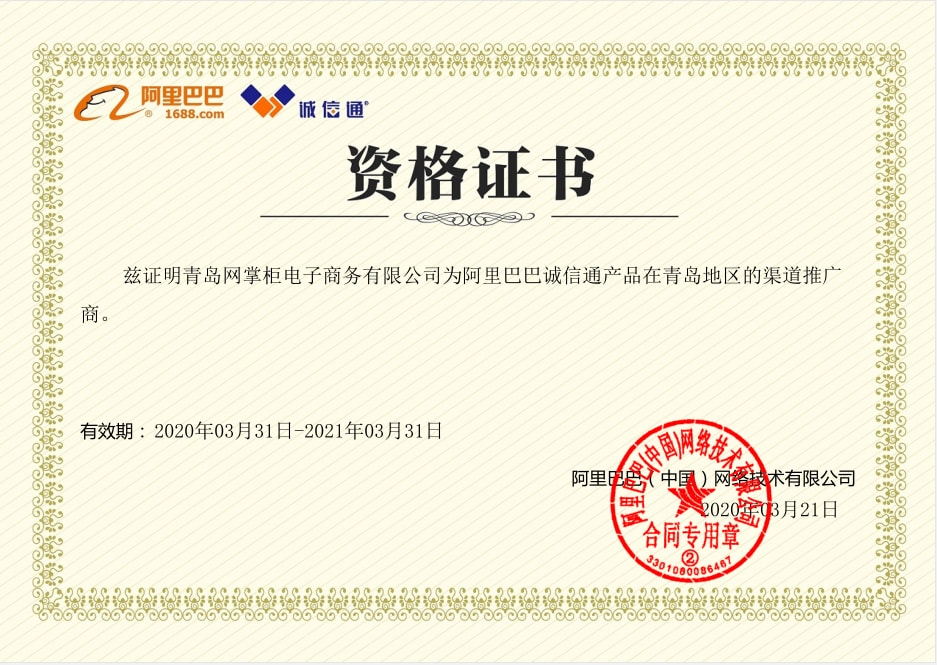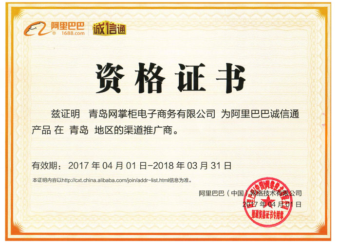 阿里巴巴诚信通青岛授权渠道商证书