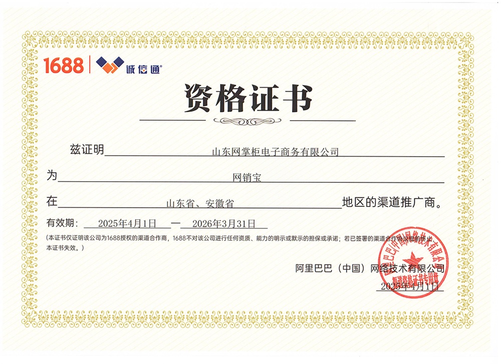 阿里巴巴诚信通青岛烟台威海授权渠道商证书