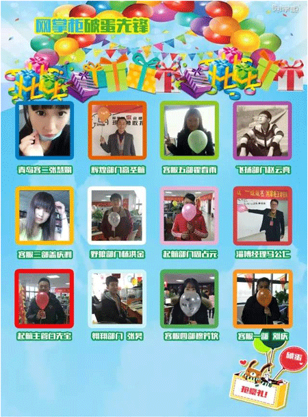 2016年的最后一个月,为了给小伙伴们带来更多的福利,网掌柜举办了一场出单破气球大战!每个小伙伴面前都有一个气球,气球里面有各式各样的大奖(听说还有现金300元呢!)只要你破蛋就能把你面前的气球破掉,里面的大奖就属于你!不仅如此,再出单还可以点名破其他小伙伴的气球,大奖也是属于你的!哇咔咔,听起来就好爽!