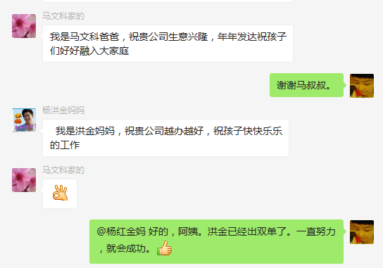 衷心的感谢我们的家人们,祝福多多,感动多多,我们一定用成绩回报你们。同时,您也不用担心我们的伙伴们,在公司里,不光有关爱、帮助他们的上级,还有我们天使后援团为他们解决温饱。
