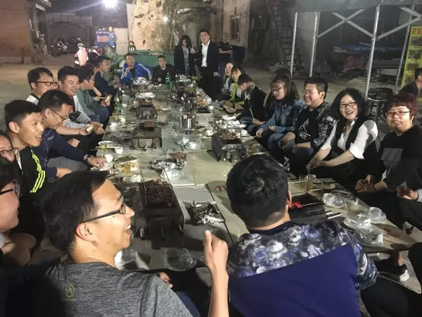 公司为大伙安排了烧烤聚餐,让三地的管理团队聚在一起,畅所欲言,把酒言欢。大家一口肉一口酒,美美的吃,放肆的喝。