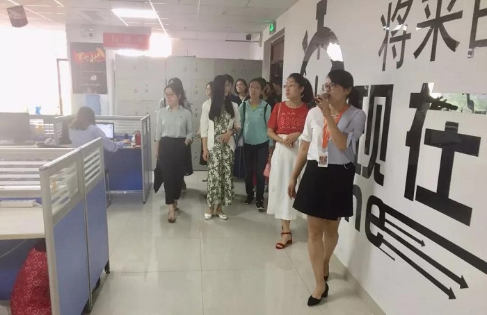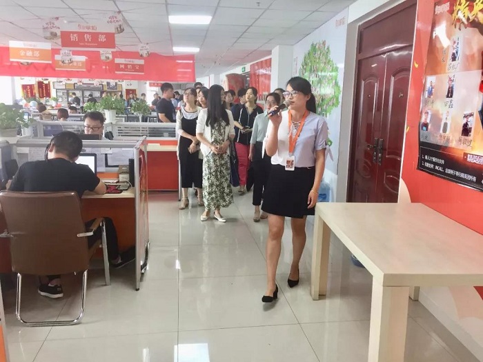 随后,淄博市张店区组织部干部教育科培训班成员来到业务部门,巩经理向各位成员介绍了公司目前业务发展情况。公司业务部门除客服部、销售部、网销宝部门外,还设有金融部,专为出现资金问题的中小微企业提供金融服务。